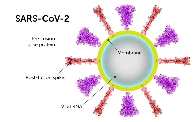 Ter herinnering: mRNA COVID-vaccins bevatten genetische code om het zogenaamde “spike-eiwit” te produceren, een onderdeel van het SARS-CoV-2-virus dat het virus in staat stelt menselijke cellen binnen te dringen en te infecteren. Tijdens het penetratieproces, dat “fusie” wordt genoemd, verandert het virale spike-eiwit van vorm en wordt het een soort speer die het celoppervlak binnendringt.