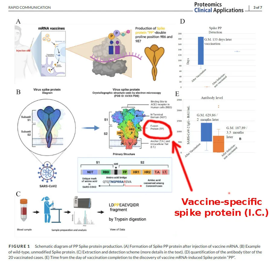 Het bleek dat alleen de mensen in de gevaccineerde subgroep gevaccineerd spike-eiwit bij zich droegen. Erger nog, het vaccin spike-eiwit werd pas zes maanden na de laatste dosis gevonden!