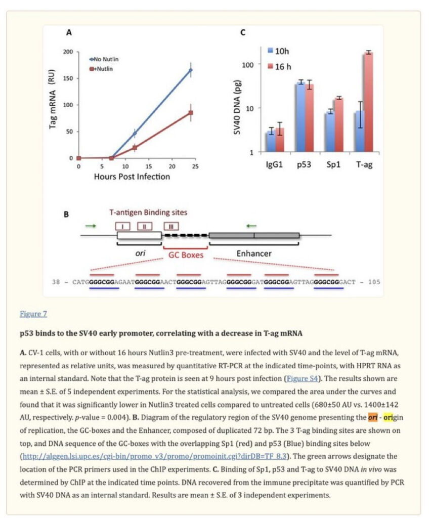 De aanwezigheid van SV40 enhancergenen verhoogt het risico op DNA-integratie, aldus de hoofdauteur, die een in 1999 gepubliceerd wetenschappelijk onderzoek aanhaalde waarin maximaal transport van DNA met behulp van de SV40 enhancer werd gevonden. De piekperiode voor SV40-onderzoek, in termen van het totale aantal publicaties, liep van de jaren 1980 tot 1999.