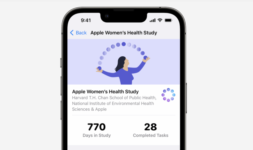 De Apple Women’s Health Study – Harvard T.H. Chan School of Public Health werd voor het eerst aangekondigd in 2019. In maart 2021 hebben onderzoekers een voorlopige data-analyse van de studie vrijgegeven, die onder meer metriek over veelvoorkomende menstruatiesymptomen bevatte.